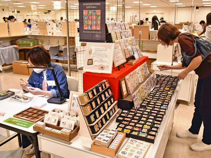 45店が出店し、はんこやマスキングテープ、シーリングスタンプ、カードなど約1万2000種類を販売。出展クリエーターが描き下ろした本県をモチーフとしたスタンプなど限定グッズのほか、クリエーターが巾着にその場で似顔絵を描いてくれたり、消しゴムはんこに好みの文字を彫り入れてくれたりするなどオーダーメードの文具を手に入れることもできる。時間は午前10時~午後7時(最終日は同5時)。
