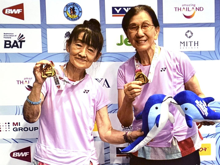 大熊町の佐久間文子(ふみこ)さん(76)=いわき市に避難=が、バドミントンの世界シニア選手権の女子ダブルス(75歳以上80歳未満)で初優勝を果たした。優勝報告のため19日、町役場に吉田淳町長を訪ね、「長く続けてきてよかった。表彰台からの景色は本当に最高だった」と喜びを語った。 世界シニアは7~14日にタイのパタヤ市で開かれた。佐久間さんは全日本シニア選手権の成績などを踏まえて、日本バドミントン協...