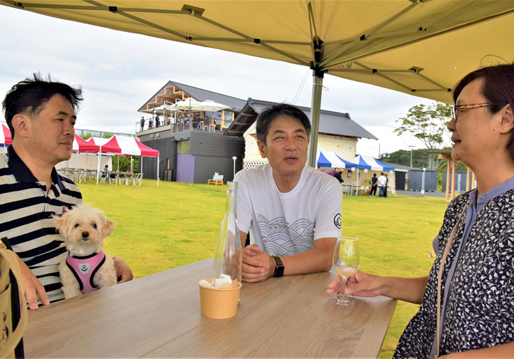 東京から来場した女性は「駅近くにブドウ畑が広がるワイナリーは魅力的」と期待した。遠藤秀文社長は「初の収穫祭を開催できてうれしい。ワインの質を高め、人を呼び込み、復興に波及させたい」と語った。