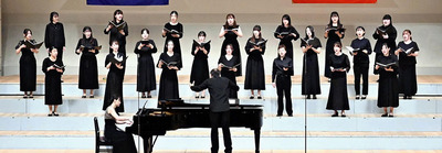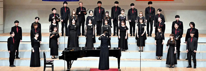 福島大混声合唱団は、昨年に続き自由曲に三善晃作曲の2曲を選んだ。大川原楓子(ふうこ)団長は「1曲の中で多彩な表現が求められる曲。次に向けて強弱表現をもっと突き詰めたい」と話した。
