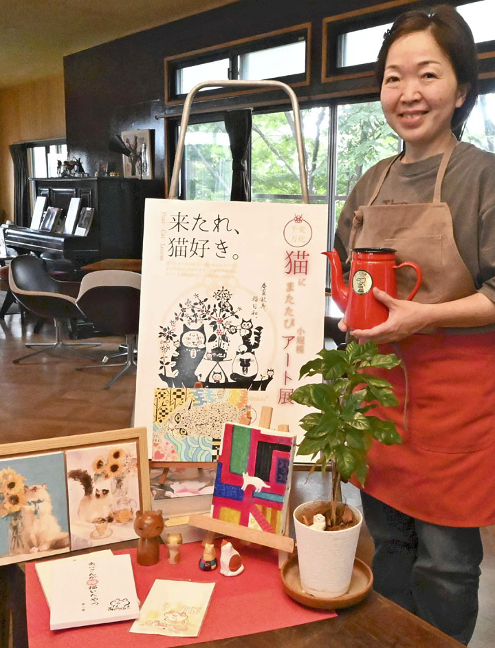 桑折町西町のカフェすわの杜は10月10~14日、同店で「猫にまたたび小規模アート展」を開く。店主の斉藤貴子さん(52)は「ネコへの愛情あふれる作品とくつろぎのカフェ空間を楽しんでいただけたら」と話す。入場無料。