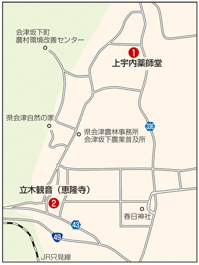 上宇内薬師堂の拝観は事前予約が必要。1週間前を目安に電話で予約する。拝観料500円。立木観音は予約不要、拝観料300円。問い合わせは上宇内薬師会(電話0242・83・1953)、恵隆寺(電話0242・83・3171)へ。
