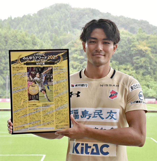 サポーターや県民らの投票で最優秀選手(MVP)を選ぶ「みんゆうアワード2025」の第3弾でMVPに輝いたMF五十嵐聖己(せな)選手。第25節磐田戦から5試合で4得点と怒濤(どとう)のゴールラッシュで文句なしのMVPを獲得した。「正直得点は磐田戦で止まるかなと思っていた。運が良かったです」と振り返った。サポーターからの熱いメッセージが並んだ写真パネルを「これもらって良いんですか」とうれしそうに...
