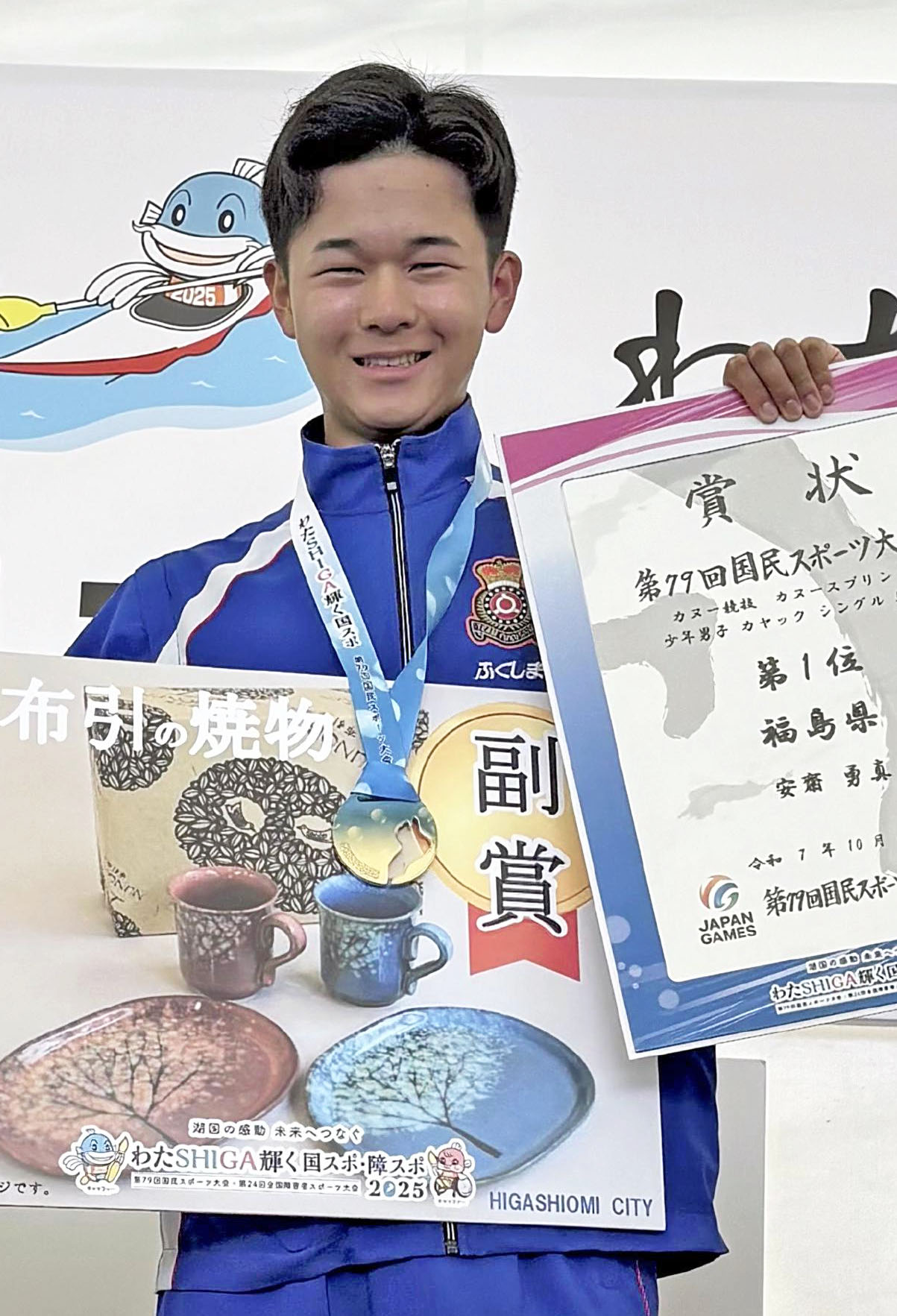 8月の全国高校総体(インターハイ)を制した若武者がコンマ数秒以下の接戦の末、全国2冠を達成した。滋賀県で4日に行われた国民スポーツ大会(国スポ)のカヌー少年男子カヌースプリント・カヤックシングル500メートル決勝で、安斎勇真(安達高3年)は準決勝1位通過の勢いそのままに優勝を果たした。「自己ベストを更新し、満足できる結果だった」と会心のレースを振り返った。 課題とする序盤は「いつも通り」出遅...