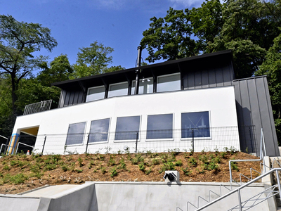 福島市の信夫山で整備が進められていた健康増進、介護予防拠点「しのぶ山テラス」が6日開所した。関係者に住宅内が公開され、設備や屋上から一望できる市内の風景などを確認した。