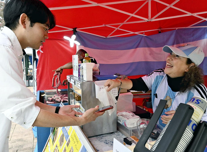 メイン会場の町中央公民館では、南米雑貨やケーナなどの中南米楽器、チョリソーなどの南米料理を販売するブースが並んだ。二本松市から訪れた女性(75)は郷愁あふれるフォルクローレを好んで10年ほど前から毎年来場しており「これからも応援し続けたい」とイベントを楽しんだ。