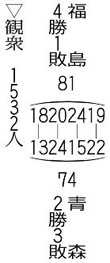福島は次戦の18日、ホームの宝来屋ボンズアリーナ(郡山市)で西地区の鹿児島と対戦する。午後3時5分開始予定。
