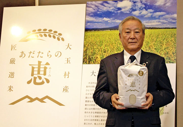 大玉村は16日、都内で村産ブランド米「あだたらの恵」の発表会を開いた。食味値の高さや環境に配慮した栽培方法など五つの条件を満たした村産米をブランド化し、優良なコメの生産地をアピールする。ふるさと納税の返礼品のみでの扱いとなり、村は17日から、ふるさと納税専用ポータルサイトで申請を受け付ける。