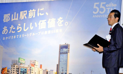 ビルなどの整備計画は、郡山市の郡山ビューホテルアネックスで行われたエリートの創業55周年記念式典でお披露目された。金田義広社長は「郡山駅前に、あたらしい価値を。」とする同社のメッセージをパネルで紹介。「郡山駅前の活性化に最大限尽力していく」とあいさつした。