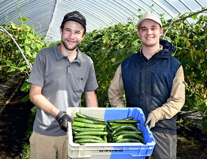 農業未経験の米国人の2人が、日本での就農を目指して喜多方市の農業法人で基礎から農業を学んでいる。「いつか日本で家族をつくり、農業で生計を立てたい」と将来設計を思い描く。 テキサス州出身のタナー・フルトンさん(22)とヘンリー・フッチさん(20)は、農産物や農作業の安全性を管理するGAP(ギャップ、農業生産工程管理)の国内認証「JGAP」を取得している渡部ふぁーむで日々、汗を流す。共に幼少の頃から...