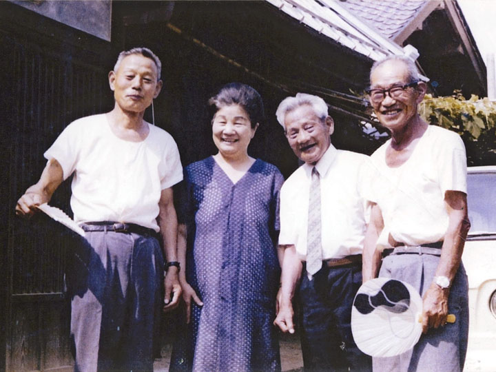 日本に帰国後、きょうだいと再会した野内与吉(左から3人目)=1968年、大玉村(親族提供)