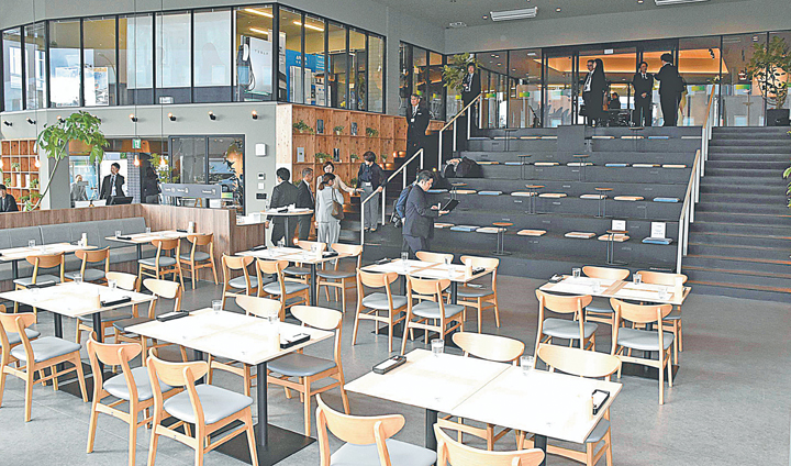 新施設は、日産やルノー車を展示・販売していたショールーム「福島BIG20」の2階建ての建物を改装。1階には地元産食材を使った料理を提供する直営レストランや、市民らが交流できる空間を整えた。