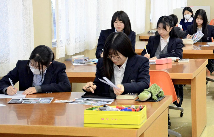 福島市の西沢書店は10月28日、同市の桜の聖母学院中・高で、本を紹介する店頭広告POP(ポップ)の作り方を紹介する講習会を開いた。