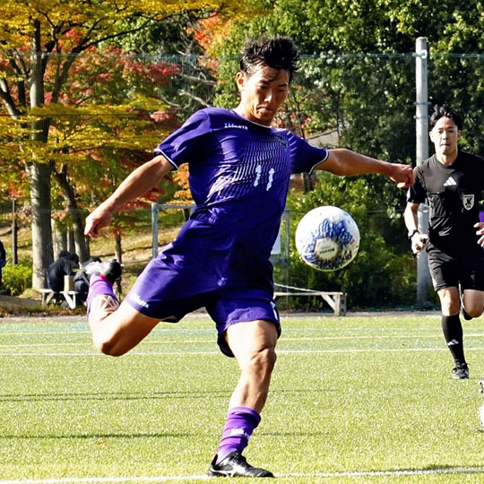 【学法石川―郡山】前半38分、自身3点目となるシュートを放つ学法石川のFW前田翔