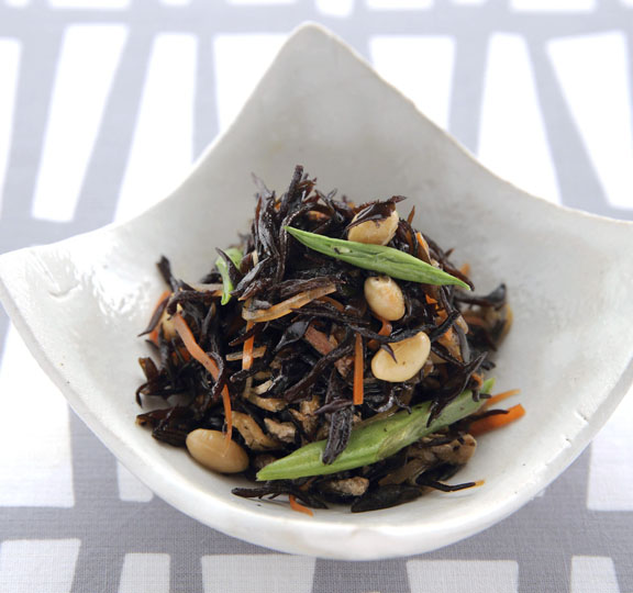 1人分79キロカロリー、塩分0.8グラム(1)2人分で乾燥芽ヒジキ6グラム、ニンジンと大豆(水煮)各20グラム、油揚げ10グラム、ごま油小さじ1/2、きび砂糖大さじ1/2、サヤインゲン2本を用意します。(2)ヒジキは水で戻して水気を切り、ニンジンは千切りにします。油揚げは熱湯を回しかけて油抜きをし、千切りにします。サヤインゲンは斜めに切ります。(3)鍋にごま油を熱し、ヒジキとニンジン、油揚げを加え...