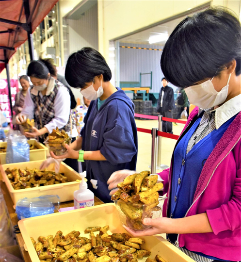 サツマイモ収穫体験やグルメコーナー、スイーツ直売コーナーなどが人気だった。販売ブースでは完熟サツマイモを使った焼き芋やスイーツ、大学芋の詰め放題が好評を集めた。