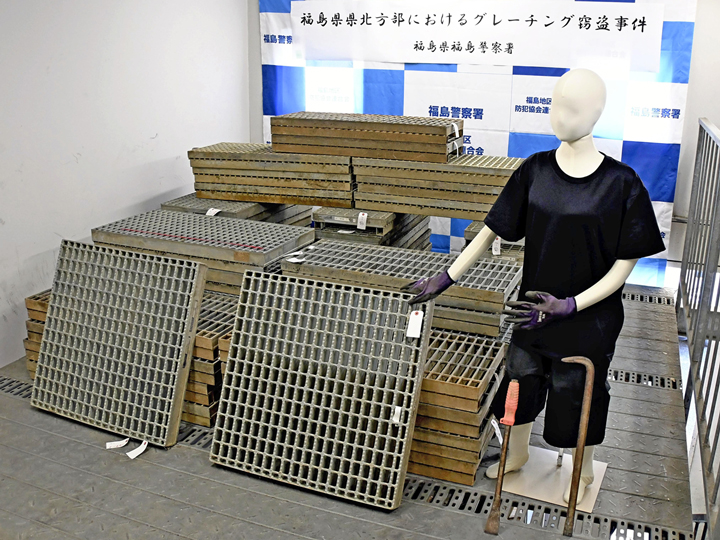 同署はグレーチング138枚(337万8000円相当)分の窃盗事件を送検している。同署は同日、男が使用したバール2本や手袋のほか、押収したグレーチングを報道陣に公開した。