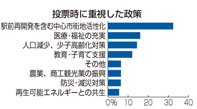 16日投開票の福島市長選で3候補が第一声で放った発言を人工知能(AI)で分析すると、JR福島駅東口の再開発や人口減少など市政の課題に対し、どのように県都のまちづくりを前に進めていくか、各候補の政治姿勢や現状認識が浮かんだ。