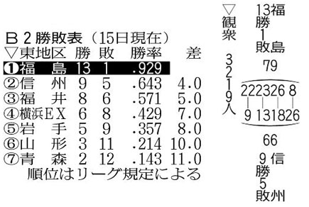 福島は次戦の16日も同会場で信州と対戦する。午後2時5分開始予定。