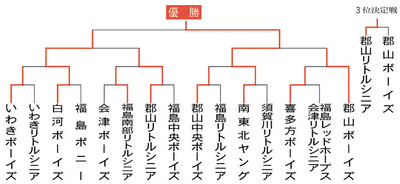 県内の硬式野球チームが所属リーグの垣根を越えて頂点を争う「中テレ・民友杯第14回県中学硬式野球大会」は15日、本宮市のしらさわグリーンパークで決勝と3位決定戦が行われ、南東北ヤングが白河ボーイズを7―3で下し、2年ぶり2度目の優勝を果たした。 3位決定戦は郡山リトルシニアが7―0の五回コールドで郡山ボーイズを破った。最優秀選手賞に水野正翔(南東北ヤング)、優秀選手賞に小林隼大(しゅんた)(白河ボー...