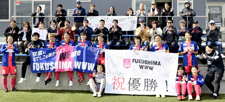 女子サッカーのアマチュア最高峰・なでしこリーグ参入を目指し、双葉郡を拠点に活動する「FUKUSHIMA WWW.(福島ウィーアー)」は8日、郡山市の熱海フットボールセンターで県リーグ2部の今季最終戦に臨み、FLOR会津に40―0で勝利した。リーグ戦を6戦全勝で優勝し、来季の県リーグ1部昇格を確実にした。 最終戦では、前半から猛攻を見せ、MF保原ひなやMF大岩みつばを中心にゴールを奪った。後半...