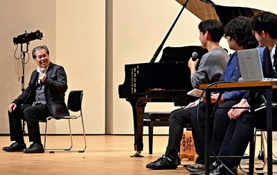 ピアノを修復したいわき市の調律師遠藤洋さんと、大東文化大の学生によるトークセッションも実施された。