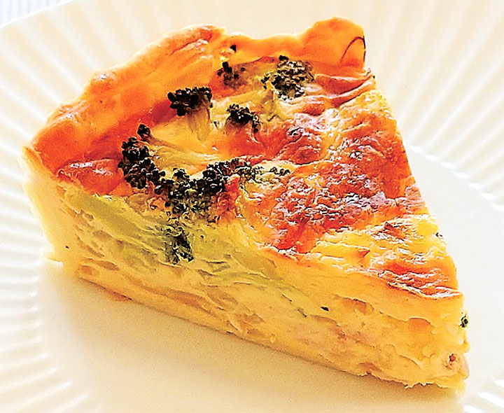 【栄養価】エネルギー343キロカロリー、食塩相当量1.0グラム ※1人分の値 ◆材料<4人分>【パイ生地】※冷凍パイ生地を利用してもよい・薄力粉........100グラム・バター(有塩)........50グラム・冷水........50ミリリットル【具材】・ベーコン........60グラム・玉ネギ........1個・ブロッコリー、キャベツ........各80グラム・オリーブ油........大さじ1【ソース】・生クリーム、牛乳........各100...