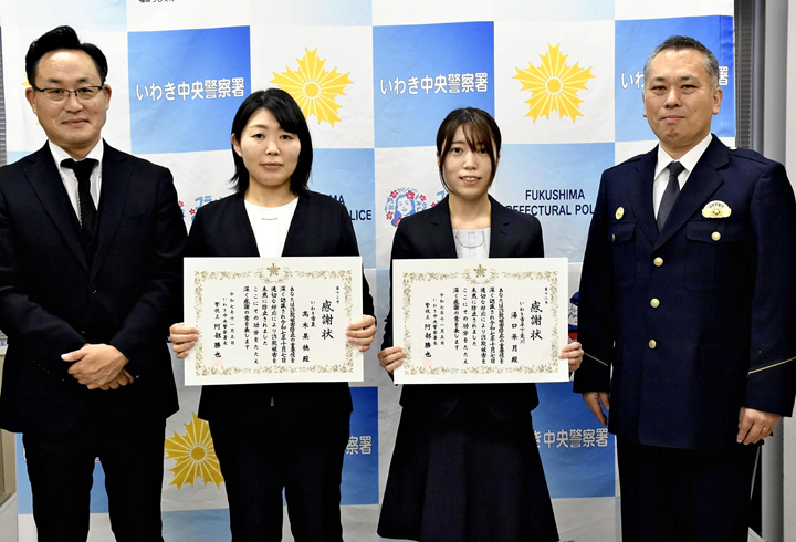 詐欺被害を未然に防いだとして、いわき中央署は大東銀行神谷支店の湯口華月さん(27)と高木果穂さん(34)に署長感謝状を贈った。
