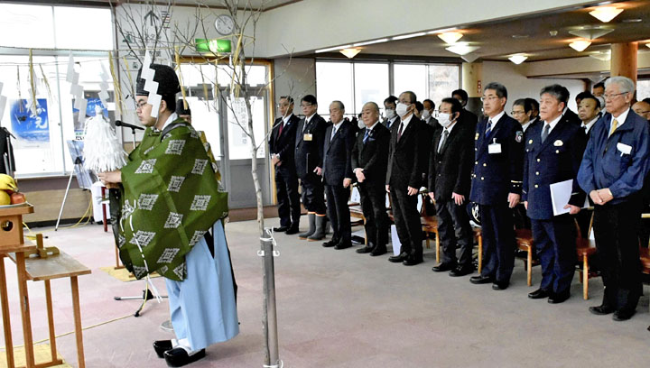 神事の後、3スキー場を運営するみなみあいづの湯田弘信社長が「利用者が安心してスキー、スノーボードを楽しめるよう、サービス向上に努めたい」とあいさつした。