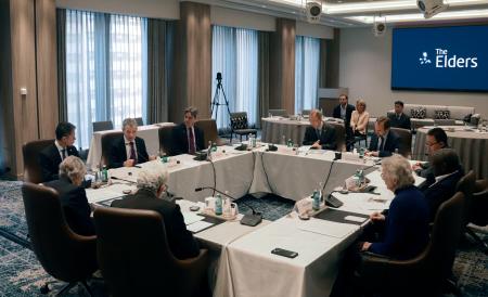 各国の元首脳らでつくる国際人道グループ「エルダーズ」は14日までに、広島県の湯崎英彦知事と広島市内で面会した。議長を務めるコロンビアのサントス元大統領は「『ノーモア・ヒロシマ』という言葉を世界中で繰り返し伝えていきたい」と述べた。面会は12日。被爆80年に合わせ、広島市でグループの理事会を開催するため訪れた。