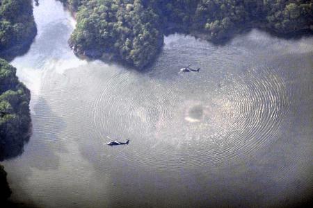取材に応じた別の男性釣り客は「『ドカーン』という音が2回聞こえた」と証言。「飛行機が落ちた」と知り現場にボートで向かうと、ぎとぎとに濁った油が100mほどの範囲に広がり、異臭が漂っていたという。