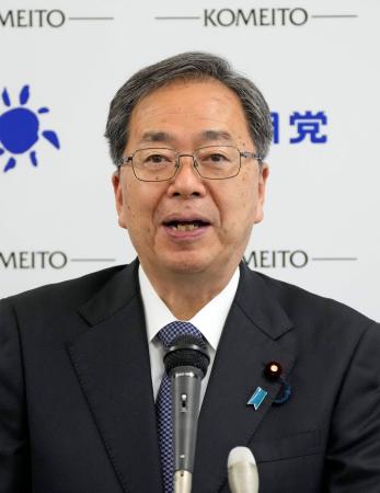 公明党の斉藤鉄夫代表は16日の記者会見で、企業・団体献金の存廃を巡って対立する自民、立憲民主両党に、歩み寄るよう求めた。公明は国民民主党と共に、献金の総枠制限などの規制強化案をまとめており「自民、立民両党が降りてきて話し合える素案を作ったつもりだ」と述べた。幅広い合意を得て、今国会での成立にも意欲を示した。