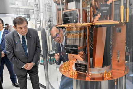 石破茂首相は18日、茨城県つくば市の産業技術総合研究所(産総研)を訪ね、原子や電子など極小物質の特殊な性質を利用した次世代計算機「量子コンピューター」の産業利用を目指す研究施設を視察した。視察後、記者団に今年を量子産業化元年と位置付け「世界市場獲得に向けて、国際ルールを作る組織を強化する」と述べた。
