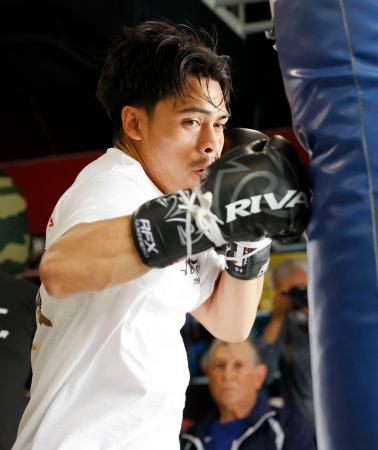 シャドーボクシングやサンドバッグ打ちで汗を流した。ここまで高地でのトレーニングやさまざまなタイプの相手とスパーリングをこなし、順調に仕上げてきた。「パワー、スピード全て均等に上げてきた。打ち合いを期待していると思うので、激しい試合をしたい」と意気込んだ。