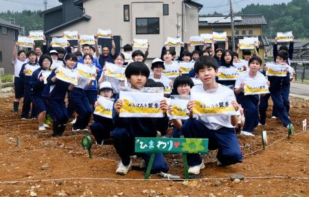 20日は生徒や住民ら約50人が集まり、ハートをかたどった区画に種をまいた。中学2年原田凜太さん(13)は「夏にきれいに咲いてくれたらうれしい」と笑顔で話した。