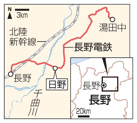 長野電鉄は、一部区間で一時運転を見合わせ、午後7時に再開した。