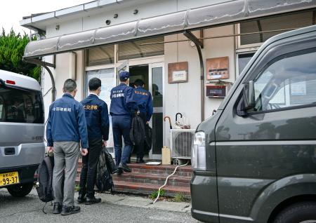 高松市の男木島沖で観光船が炎上、沈没した事故で国土交通省中国運輸局は22日、海上運送法に基づき、船を所有する六口丸海運(岡山県倉敷市)に立ち入り検査をした。午後1時ごろ「国土交通省」と書かれたジャンパー姿の男性ら4人が事務所に入った。運航管理や設備点検の状況、火災発生時の船員らの対応などを確認。違反が見つかれば行政処分の対象となる。