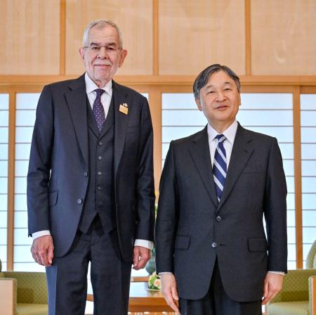 天皇陛下は22日、皇居・御所で、オーストリアのファンデアベレン大統領と会見された。大阪・関西万博のナショナルデーに合わせて来日した。