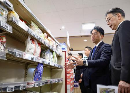小泉進次郎農相は23日、東京都内のスーパーと米穀店を視察し、販売状況や価格動向を確認した。空き棚が目立った売り場や購入数量を制限している現状に危機感を示した。視察後、記者団の取材に対し現状のままの流通では備蓄米は店頭までなかなか届かないと説明。インターネット通販を念頭に「新たなプレーヤーにも随意契約に参加していただく」と語った。