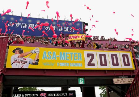 プロ野球楽天の浅村栄斗内野手(34)が24日、平成生まれの選手で初めて通算2千安打を達成した。史上56人目。仙台市の楽天モバイルパーク宮城で行われた日本ハム10回戦の一回に山崎福也投手から右前適時打を放った。