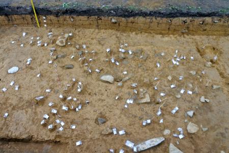 遺跡は廿日市市の標高約800メートル地点にある。これまでも石器が見つかっていることから、国武氏らが23年9月と24年9月に発掘を実施した。約3万年前の火山灰の層や、約3万6千年前の地層の下から、多数の石器を発見した。石器が見つかった地層に含まれる炭化物の放射性炭素年代測定で、約4万2300年前という結果が出た。