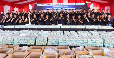 税関によると、覚醒剤はタイ南部プーケットで積み込まれ、最終目的地はフィリピンだった。押収した多数の箱から、覚醒剤が入った2千袋が見つかった。