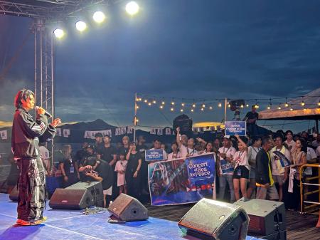 エルニド沖に停泊した船の甲板では26日夜、漁業者らを招き、出発前コンサートが開かれた。フィリピンや日本、韓国、インドネシア、マレーシアの歌手らが熱演した。