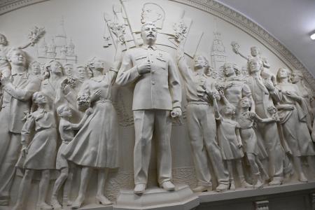 【モスクワ共同】ロシアの首都モスクワの地下鉄駅に5月中旬、ソ連時代の独裁者スターリン(1879~1953年)の彫像が復活した。スターリンを巡っては、第2次大戦でソ連を勝利に導いた指導者としての評価がある一方、知識人ら多数の国民を弾圧した30年代の大粛清に対する否定的見方も根強い。公共空間への“再登場”に賛否が割れている。