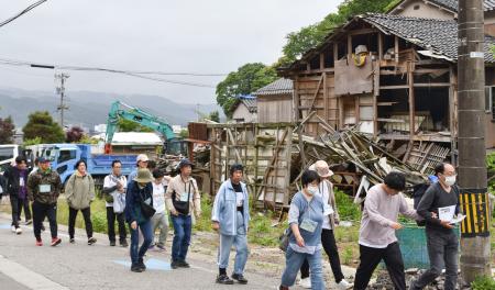 昨年元日の能登半島地震で被災した石川県輪島市で1日、ウオーキングイベントが開かれた。地震発生から1年5カ月を迎え、参加者は鎮魂の思いを胸に、大規模火災に見舞われた「朝市通り」周辺や、倒壊したままの家が残る集落などを巡った。