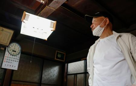 2日午後、住民の男性(67)が自宅のブレーカーを「入」にして、照明のスイッチを押すと、薄暗かった部屋が明るくなった。仮設住宅に一時入居したが、自宅で暮らしたい思いから戻っていた。