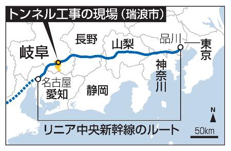 岐阜県瑞浪市大湫町のリニア中央新幹線トンネル工事現場付近で井戸の水位が低下した問題で、JR東海は3日、掘削中にトンネル内で起きた湧水を低減するための薬液注入を取りやめることを明らかにした。低下した地下水位が元の状況まで回復する手だてとなっておらず、トンネルが損傷するリスクがあることを踏まえた。JRは同日、住民説明会を開いて説明した。