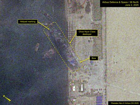 38ノースによると、作業は人力で、5月29日の画像では、作業員が岸壁で駆逐艦につないだとみられるロープを引いていた。6月下旬の朝鮮労働党の重要会議、中央委員会総会までの復旧を目指しているとされる。