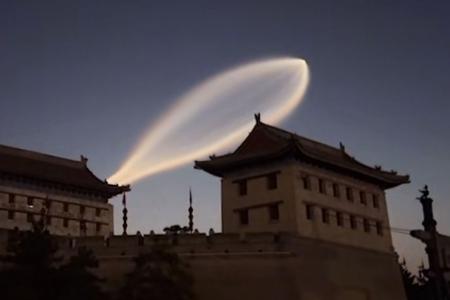 【北京共同】中国陝西省西安の上空で6日早朝、巨大な発光物が観測され、インターネット上で動画が拡散した。中国メディアは山西省の太原衛星発射センターから打ち上げられた「ロケットの軌跡」だと報じた。