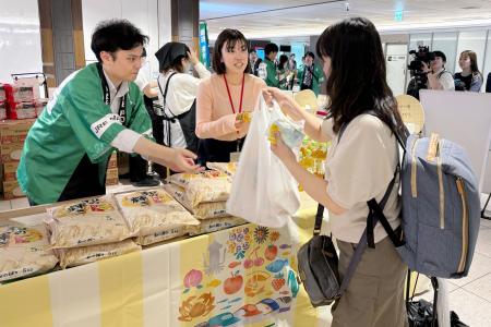 生活用品大手アイリスオーヤマ(仙台市)は10日、随意契約で調達した政府備蓄米5キロ入り計200袋をJR東京駅と上野駅で販売した。備蓄米は、JR東日本の貨客混載サービス「はこビュン」を利用し、新幹線で仙台駅から運送した。アイリスによると、系列店や自社サイト以外での販売は初めて。